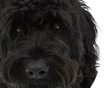 Und ich bin ein Schwarzer Russischer Terrier.