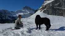 Heute ist ein schöner Tag. Claudia nimmt mich mit auf eine Schneeschuhtour. Es ist meine zweite. Ich mache es super. Ganz ohne Probleme.